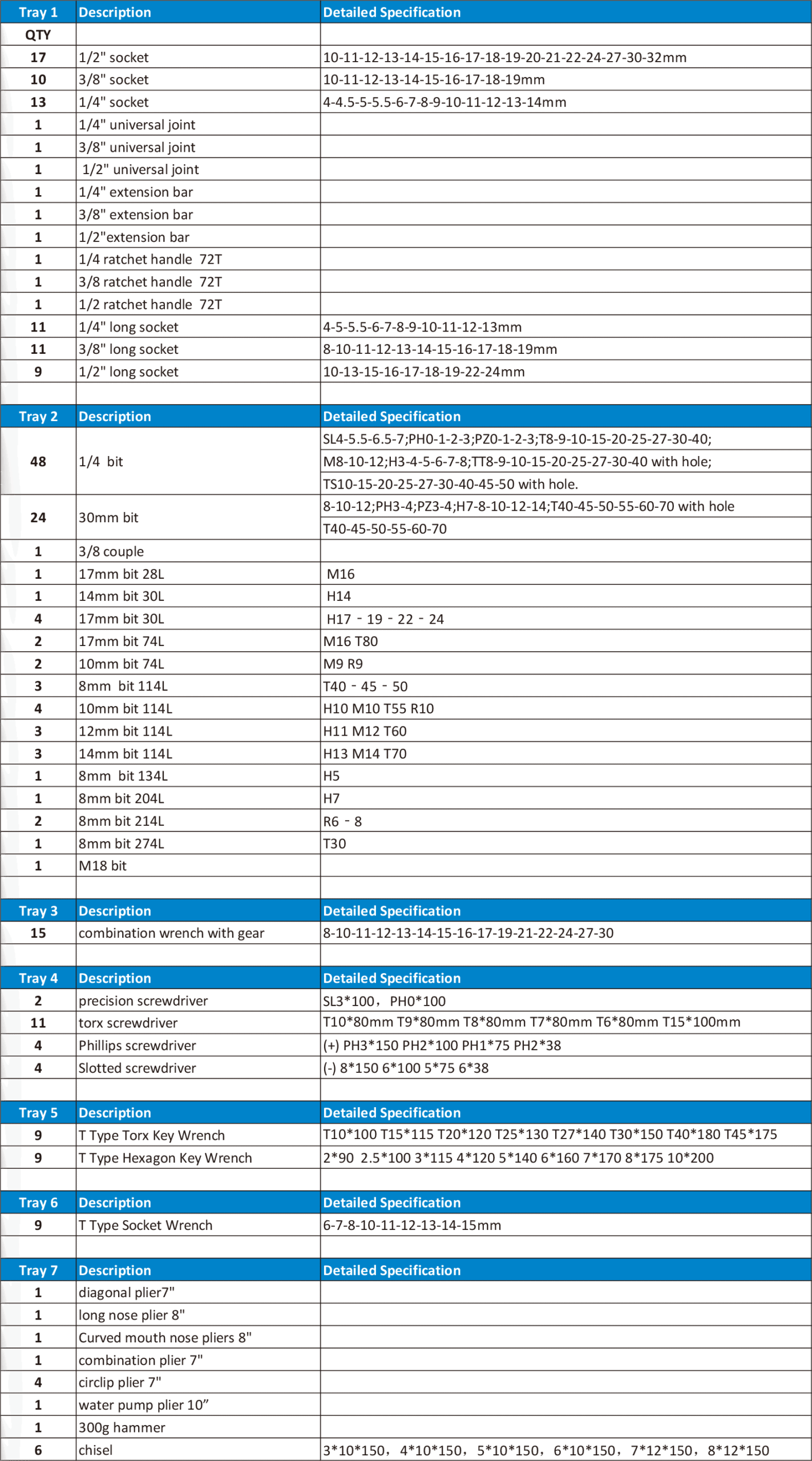 Tools Cabinet With 7 Drawers Full 261 pcs Hand Tools Set quantity