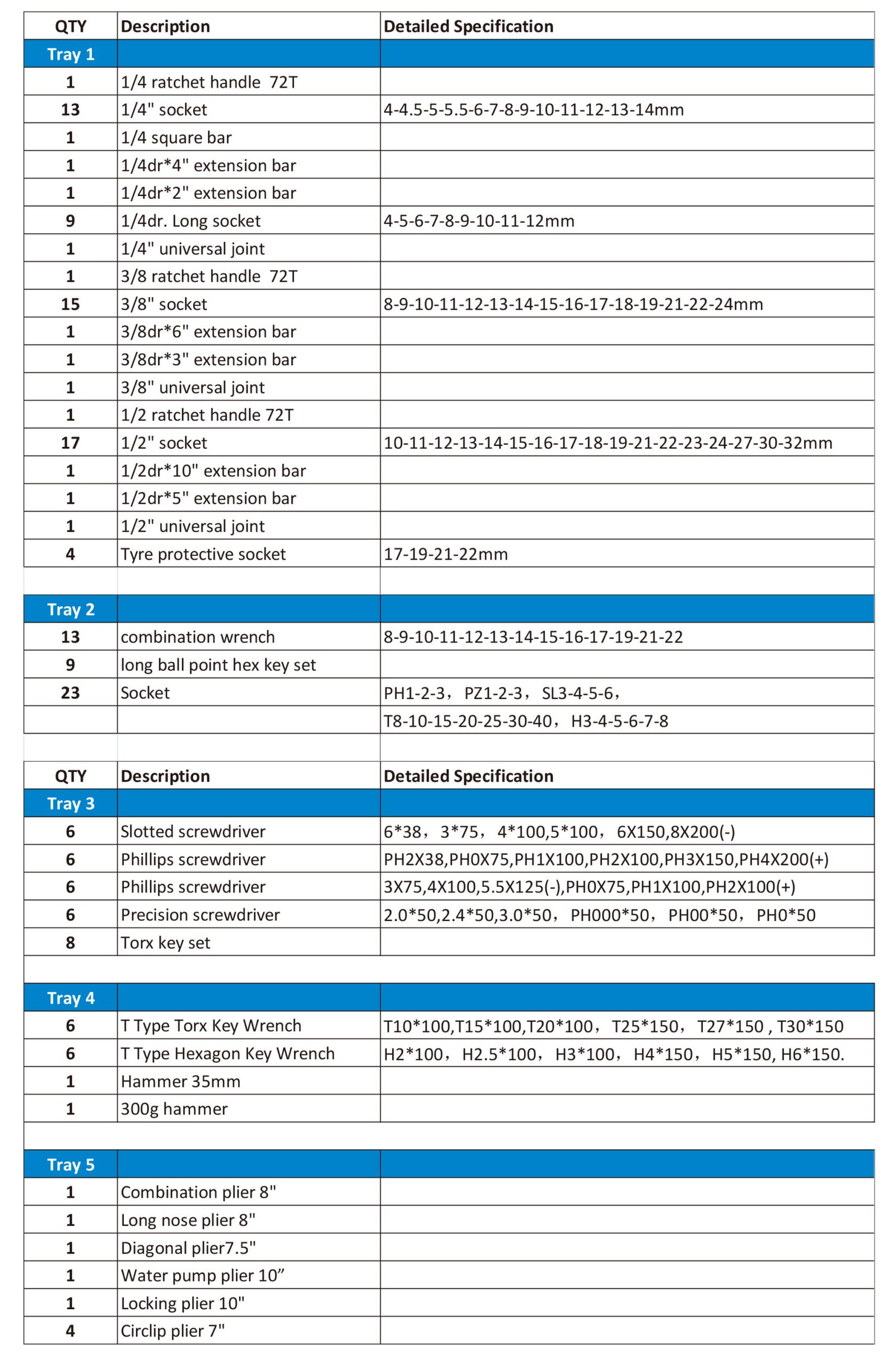 Tools Cabinet With 5 Drawers Full 171 Pcs Hand Tools Set quantity