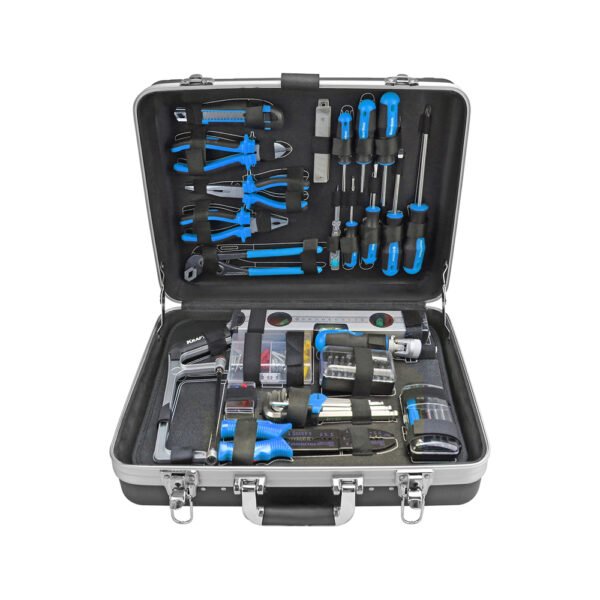 (Complete tool set) This mechanics tool set includes common household tools such as hammers, wrenches, and screwdrivers. All tools are fixed in place for easy storage and searching. A free waterproof tool belt is provided to make maintenance work more efficient. (Wheeled trolley tool kit) The household tool set adopts the ABS suitcase design style, and the tools are placed in layers after opening, which is convenient to find. It can be pulled anywhere at will, light and portable. (Essential DIY Tools) This compact tool kit contains the most useful tools for basic DIY household repairs. (Portable Tool Box) The Household Hand Tool Set is a trolley case which made of aluminum alloy. Tool sets looks like a suitcase and can be pulled anywhere freely. (Four-tier tool design) Home tools kit is designed with a four-tier toolbox. There are special spacers between each layer.